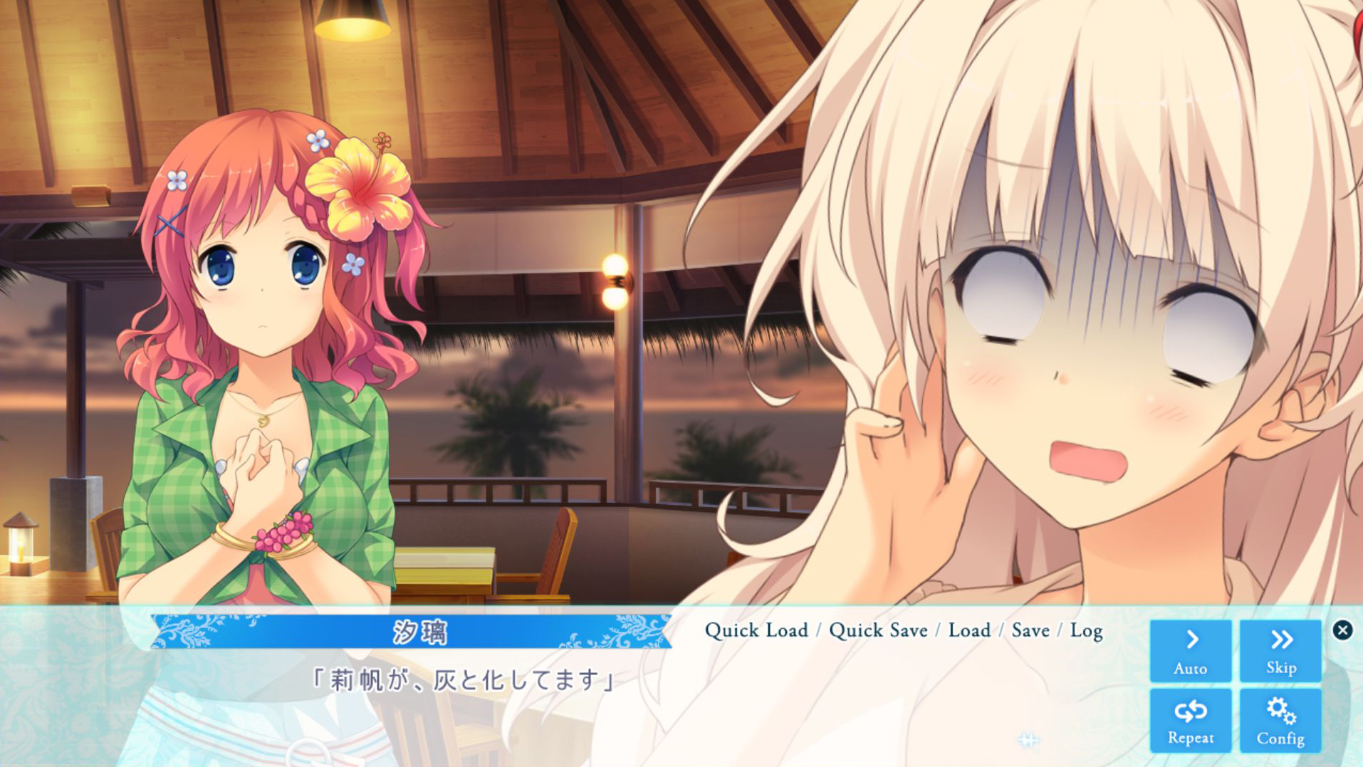 서브 히로인 산고와 시오리입니다. 이런 트로피칼(?)한 느낌이 정말 좋군요. 산고는 이 게임 내에서 활발함을 맡고 있는데 친구 문제로 고민하고 있고 시오리는 좀 조용한 포지션으로 자신이 그림 그리는 일로 고민하고 있습니다. 어떻게 보면 시오리가 저랑 맞는 면이 있는 캐릭터 같네요.