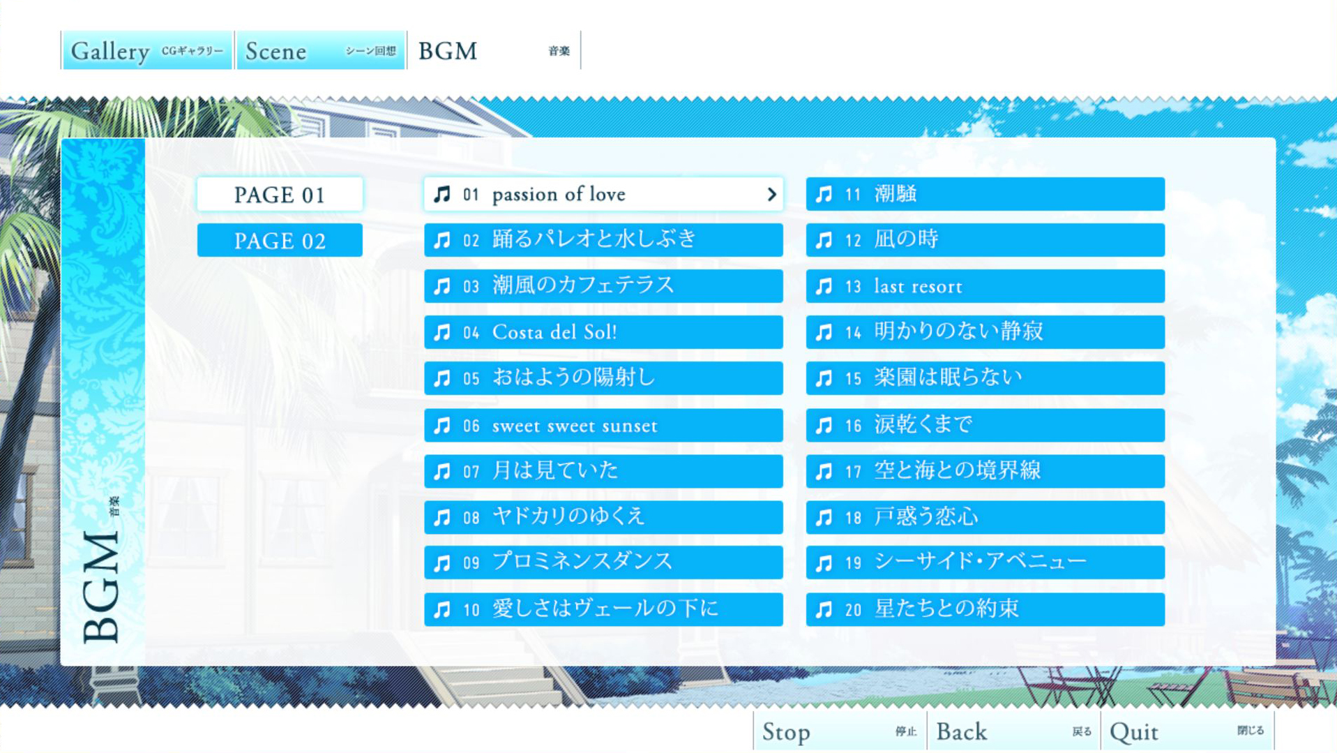 제목은 사랑하는 여름의 라스트 리조트라는 게임이에요. 길군요. 제작사는 풀탑 라떼(Pulltop latte)라는 곳입니다. 풀탑 게임은 이전에도 몇 번 접해본 적이 있어서 대강의 분위기는 파악하고 있는 편입니다. 좋아하지도 싫어하지도 않는 쪽인데 오프닝을 보고 마음에 들어서 꼭 해봐야겠다고 혼자 다짐했던 게임입니다.
