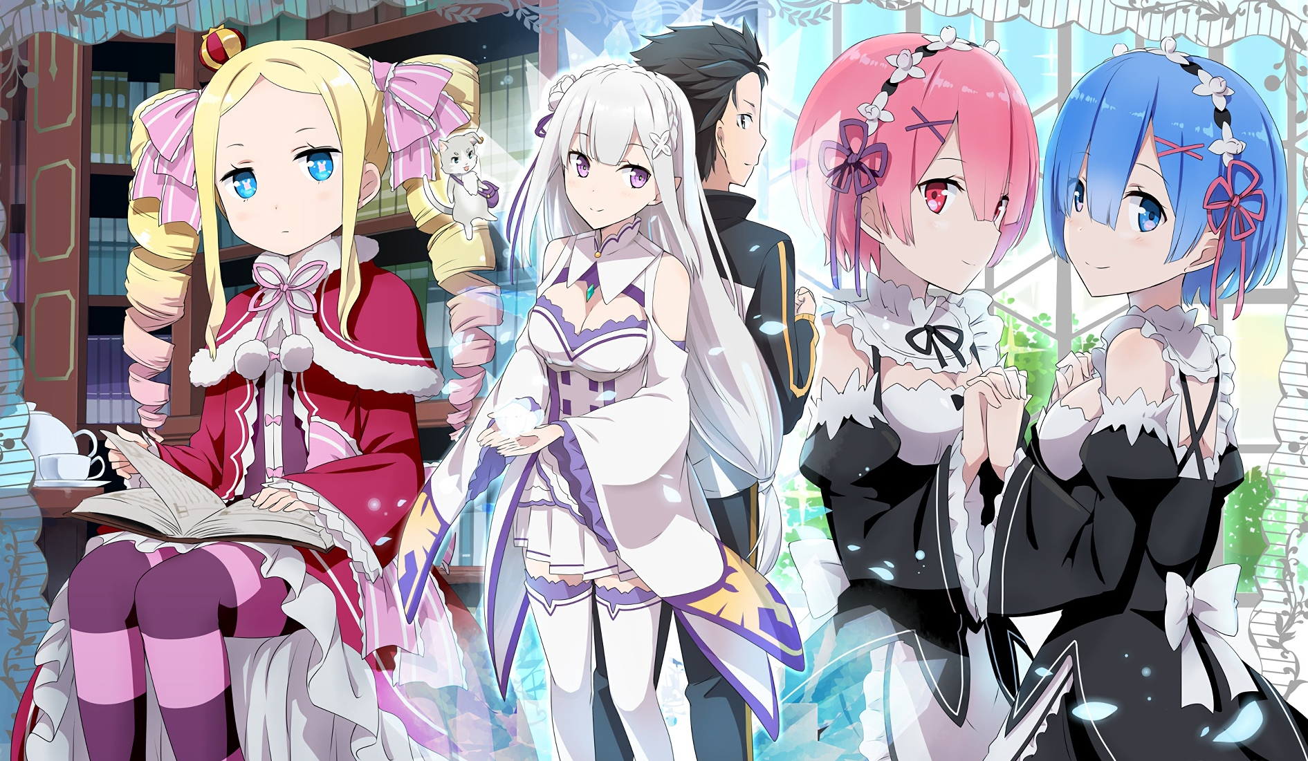 스바루가 저택에 고용해달라고 하면서 주로 람과 렘의 메이드 자매와 보내게 되고 가끔 문을 잘못 열어 서고에 있는 베아트리스를 마주치곤 하죠. 베아트리스는 저택의 서고를 지키는 역할을 맡고 있다고 하는데 박식해서 여러가지를 알고 있습니다. 외형도 롤빵 머리에 로리 체형이라 귀엽게 생겼어요. 마법도 능숙해서 마법이나 주술적인 쪽으로 지식을 전달해주곤 합니다. 람과 렘은 쌍둥이 자매로 람이 언니 렘이 동생입니다. 생긴 것도 쏙 빼닮았지만 람은 붉은 머리색이고 렘은 파란 머리색이라서 구분은 금방 가능합니다. 그리고 둘은 오니족의 생존자라서 직업은 메이드지만 오니의 힘을 구사하면 전투력도 강해집니다. 이중 동생인 렘이 인기가 많아요. 그러나 저는 썩 공감하지 않는 편인데 왜냐하면 처음에 렘이 스바루에게 마녀의 향기가 난다면서 스바루를 강하게 의심합니다. 그러다가 밤에 수상하다면서 낮에는 멀쩡히 일도 가르쳐주고 지내놓고선 마녀교도가 아니냐며 공격을 해옵니다. 마녀교도가 아니라고 계속 주장하는데도 잘 듣지도 않고 거짓말하지 말라면서 철퇴로 무자비하게 내려찍어서 스바루를 기어이 죽게 만드는데 저는 좀 정나미가 떨어지더군요. 나중에 나오는 마녀교도들의 극악무도한 행적을 보면 이해를 못할 일도 아니었지만 당시에는 렘이 비호감이었습니다. 그래서 이번에 스바루는 렘에게 죽어서 사망귀환을 해요. 이후에는 어떻게든 오해를 풀고 화해를 해서 렘이 메가데레가 되긴 합니다. 그때부터는 점차 괜찮은 이미지로 나오죠. 렘이 내향적인 성격이라 설득이 어려워 보였는데 이건 스바루의 친화력이 좋았다고 생각합니다.