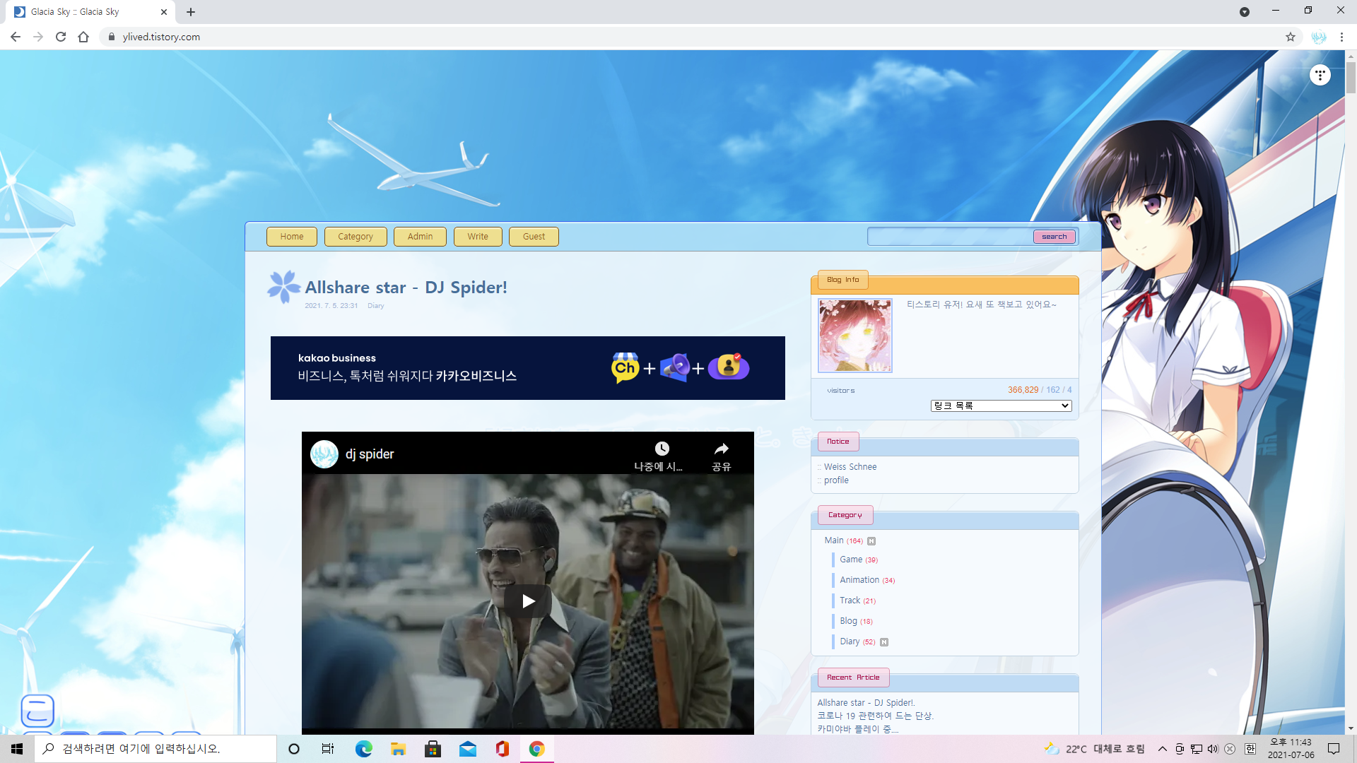 티스토리에 로그인은 지속적으로 하는 편이옵니다만 하도 신경을 못 썼더니 블로그가 잘못되는 것은 아닌가 싶었지만 그냥저냥 무사한 듯합니다. 보이는 관심과 보이지 않는 관심에 모두 감사드립니다~