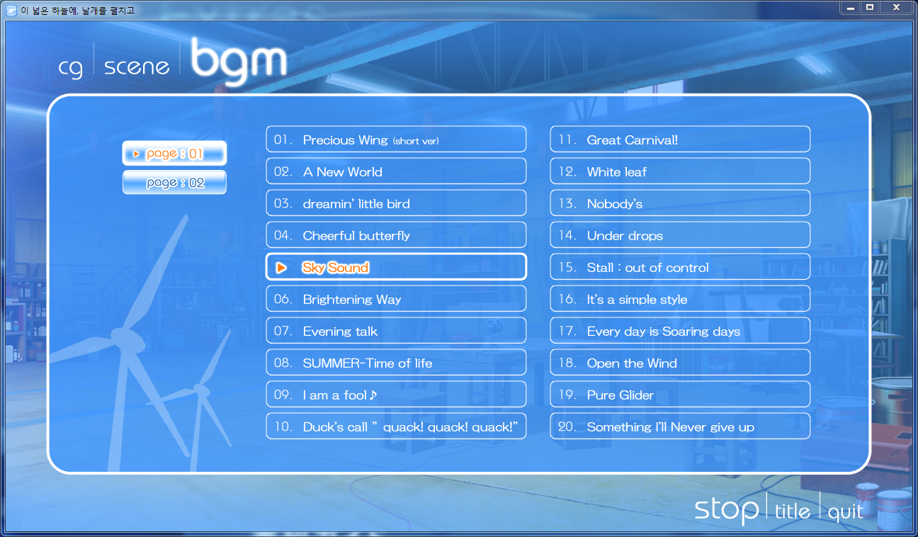 마지막 BGM에서는 게임에서 나왔던 음악을 다시 들어볼 수 있어요. 코노소라를 하면서 저는 음악을 호평했는데 좋은 음악들이 많습니다. 음악에 힘을 제법 실은 느낌이에요. 때로는 경쾌하게 때로는 웅장하게 무게감이 있는 배경 음악이었습니다. 듣다가 마음에 들어서 따로 OST를 구해다가 추출도 시도해 봤습니다.