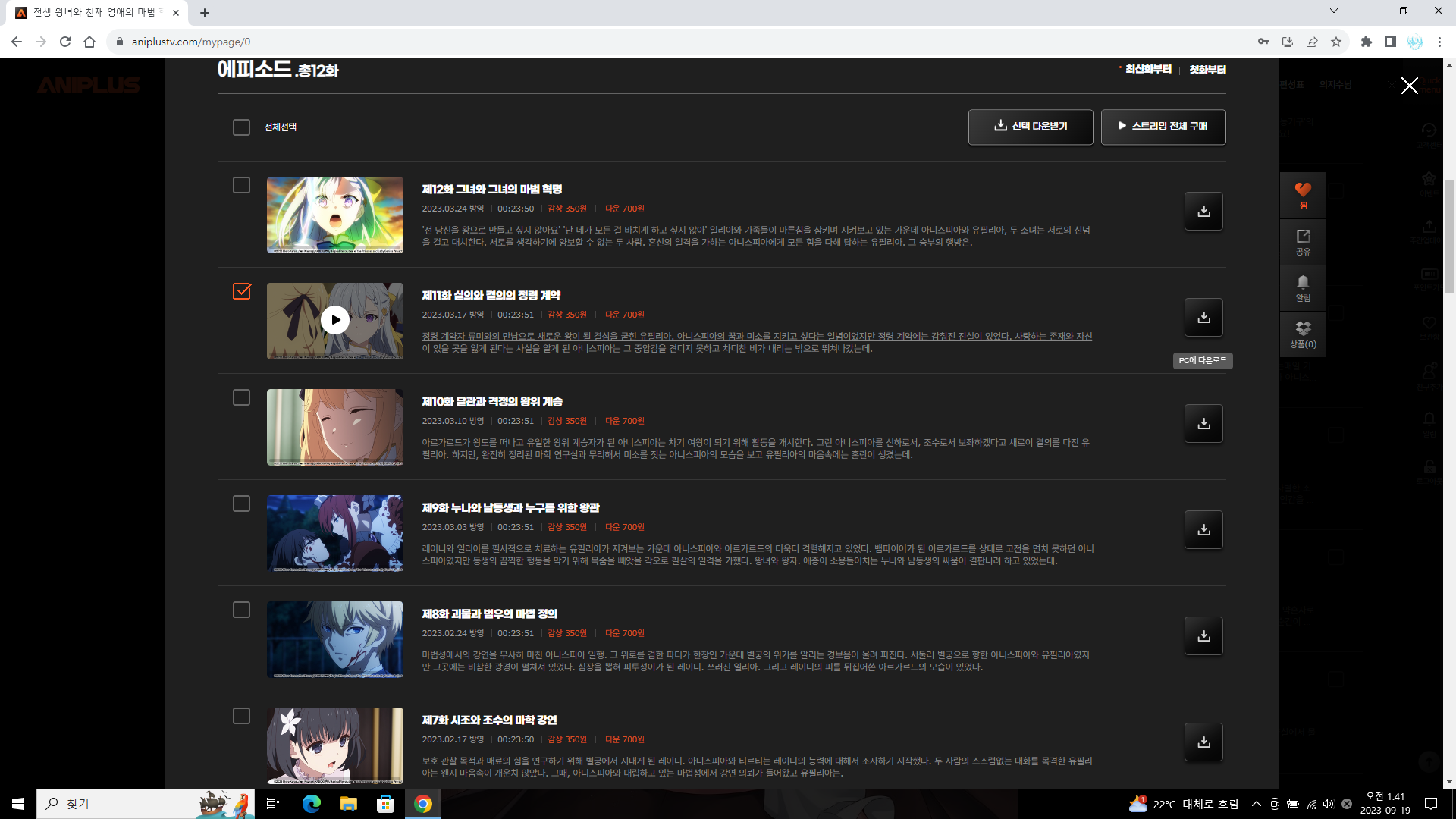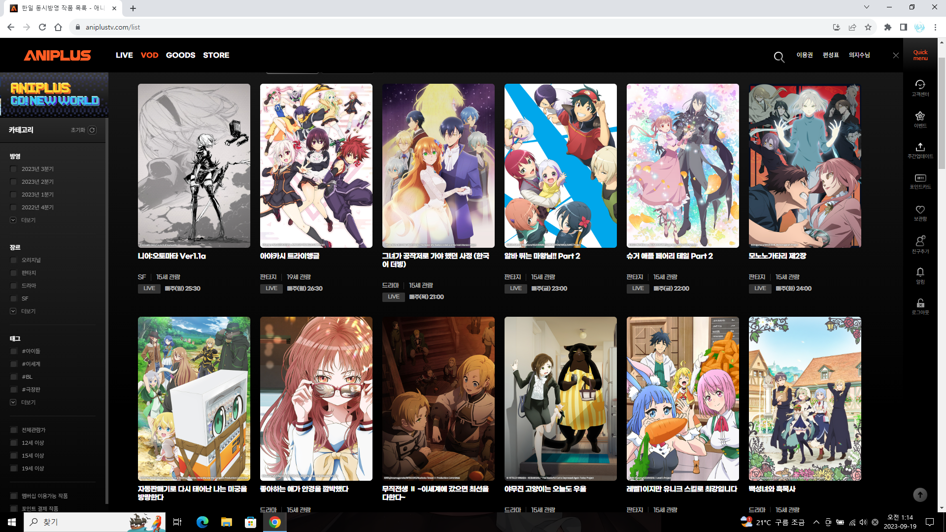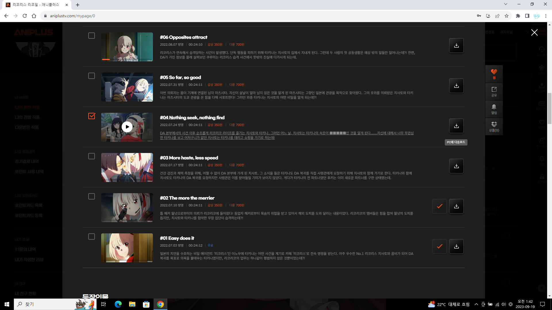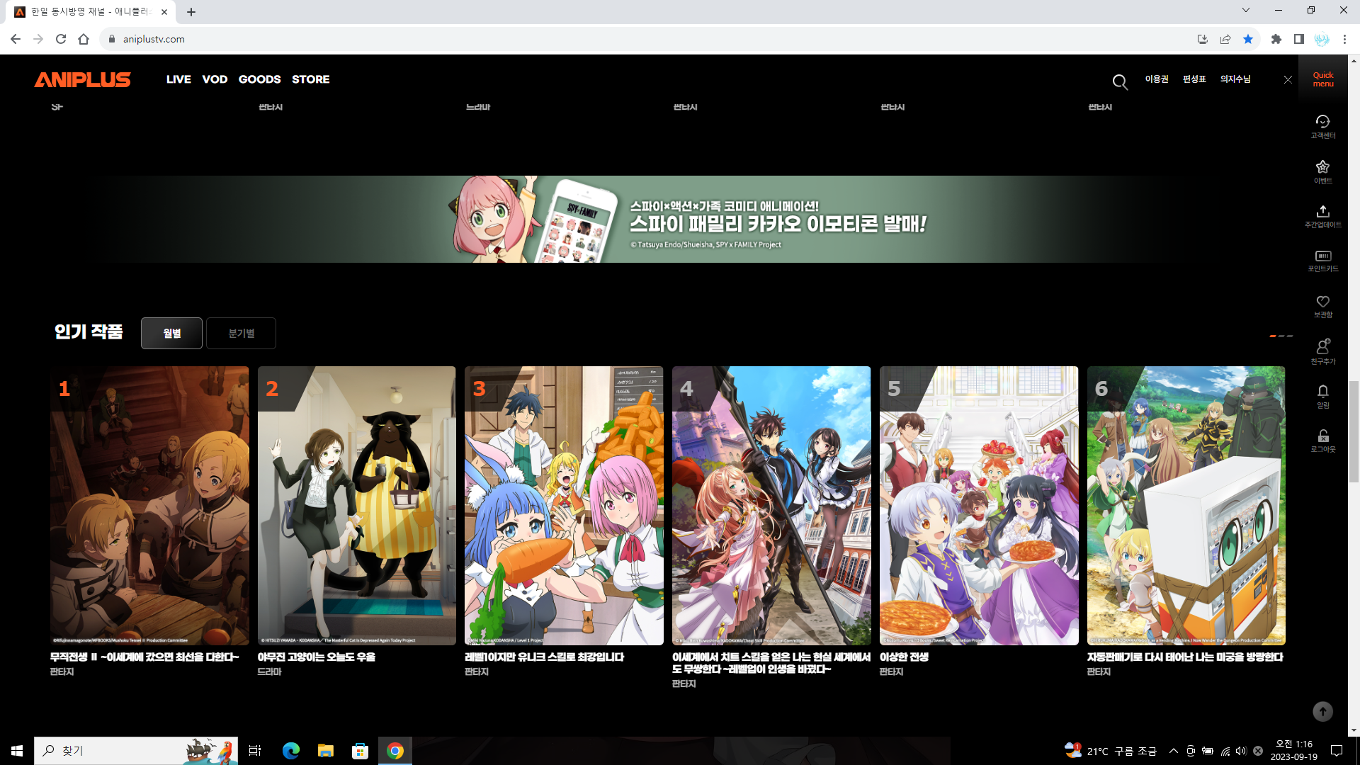 주로 넷플릭스나 라프텔 등을 자주 보는 편이지만 애니플러스는 써보니까 다른 장점이 있습니다.