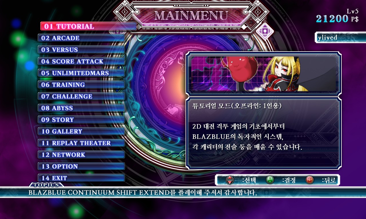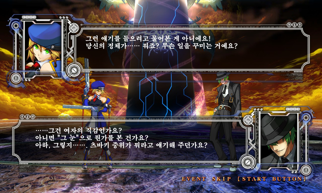 원래는 길티기어 젝스를 하려다 스팀으로 X버전이 보이질 않아서 비슷한 게임으로 블레이블루를 하게 되었다는;