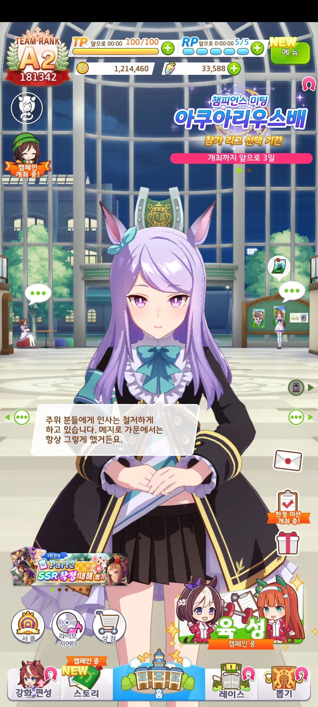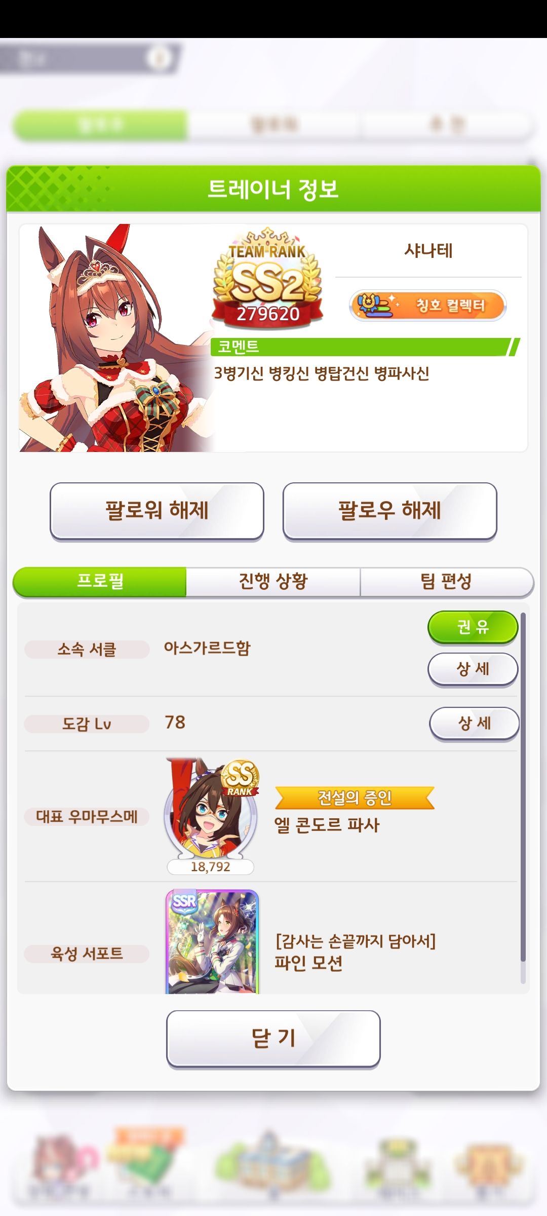 틈틈이 하고 있는 인기 모바일 게임 우마무스메 프리티 더비의 현황을 올립니다.
