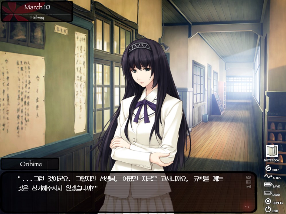 엄격한 이미지와는 달리 비교적 대화도 잘 통하는 편인데 경계를 주로 하면서도 은근히 우호적으로 나올 때가 많습니다. 개인 성향을 떠나서 게임 내에서는 악역이라 볼 수도 있기도 하지만 결국에는 피해를 당하는 포지션입니다. 저 같은 경우는 오리히메가 지시를 해서 안 좋은 상황을 맞는 배드 엔딩이 있을까봐 오해를 하고 있었다가 그런 상황이 끝내 안 나오니까 오리히메를 볼 때마다 미안한 심정도 들어요. 지켜주지 못해서 미안한 멤버 중 하나입니다 ㅠㅠ