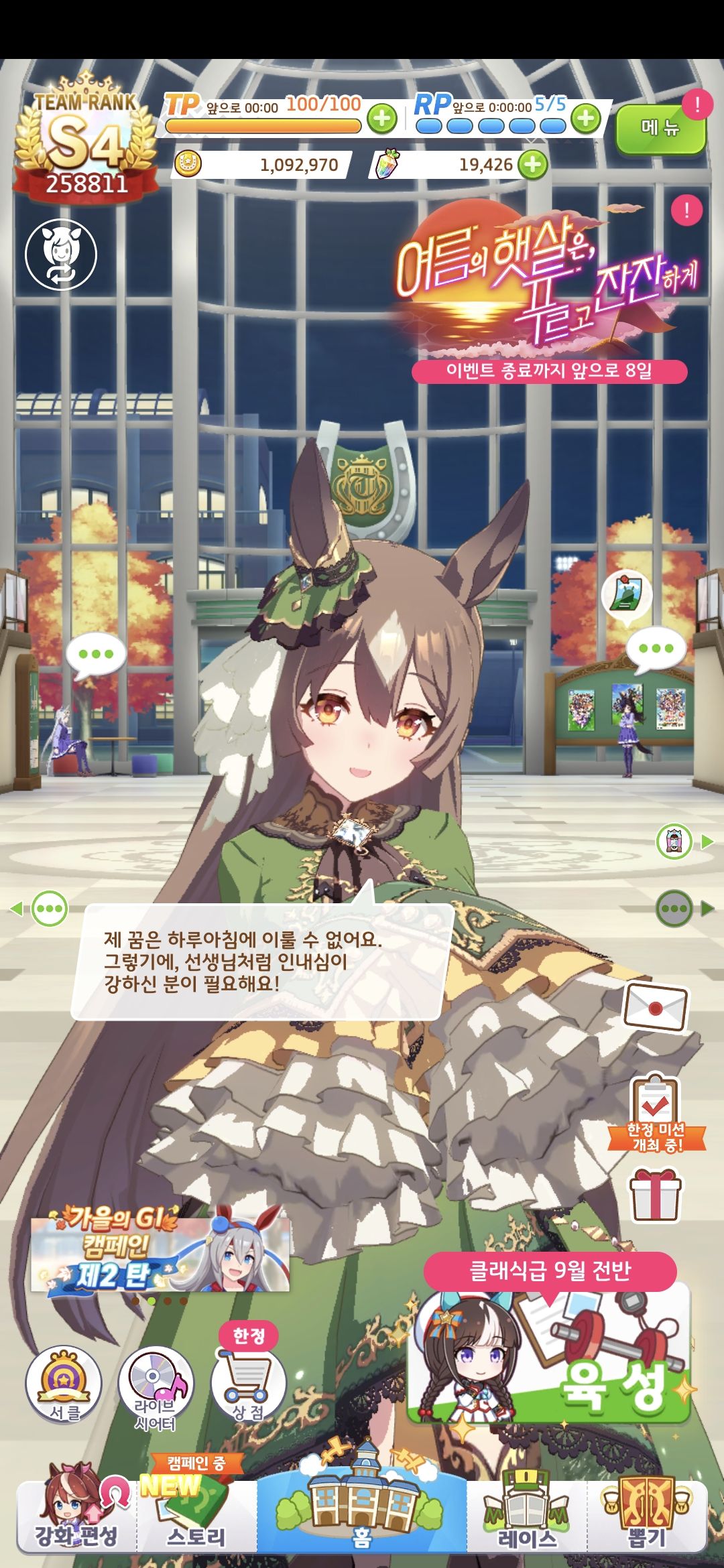 어딘가의 방패병처럼 우마무스메 라이프의 위기이자 수문장 같은 존재였죠. 그래도 이제 키타산 블랙 풀돌을 했으니까 게임을 더 본격적으로 돌릴 수 있겠네요.