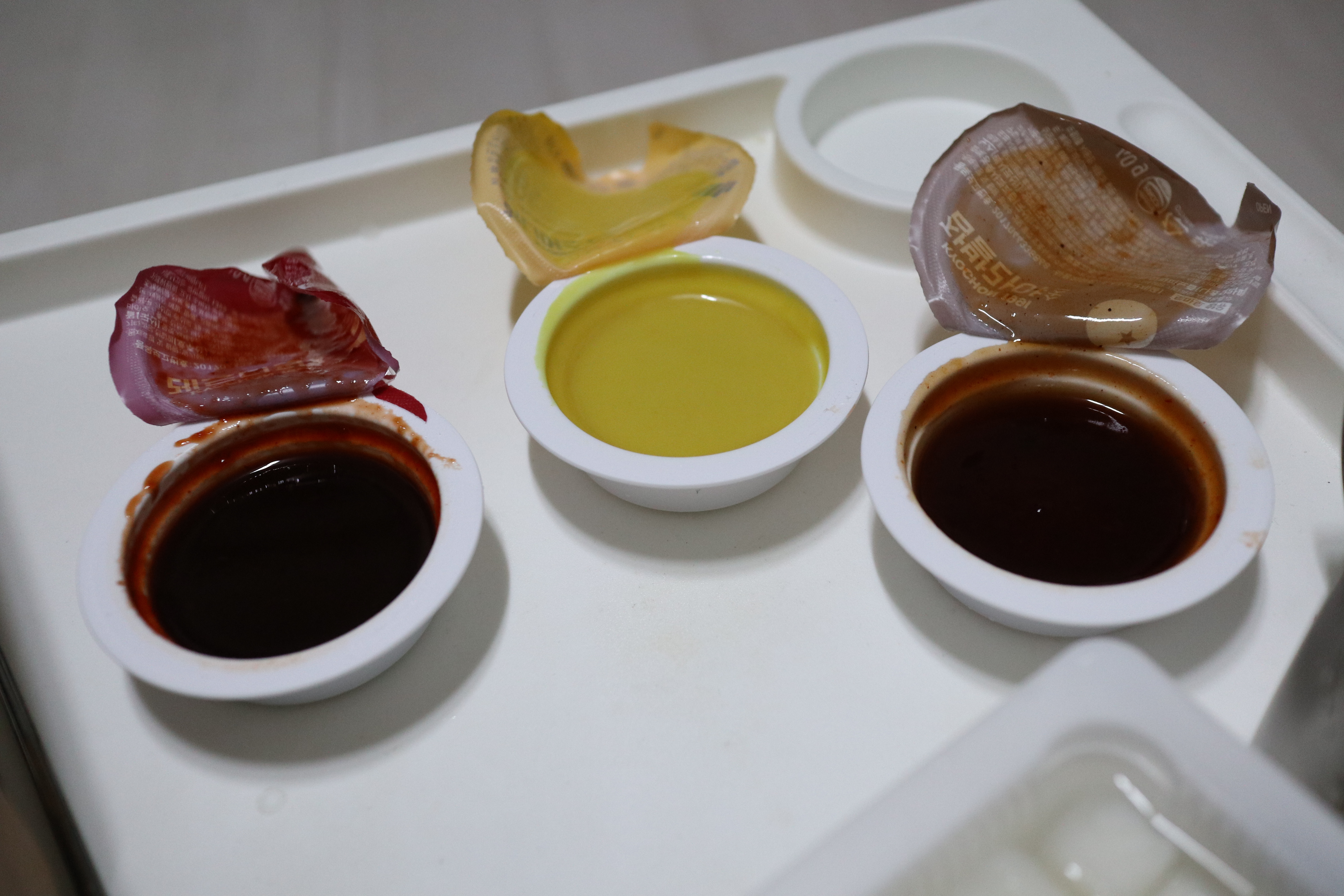 세 가지 맛의 소스가 동봉되어 있습니다.
