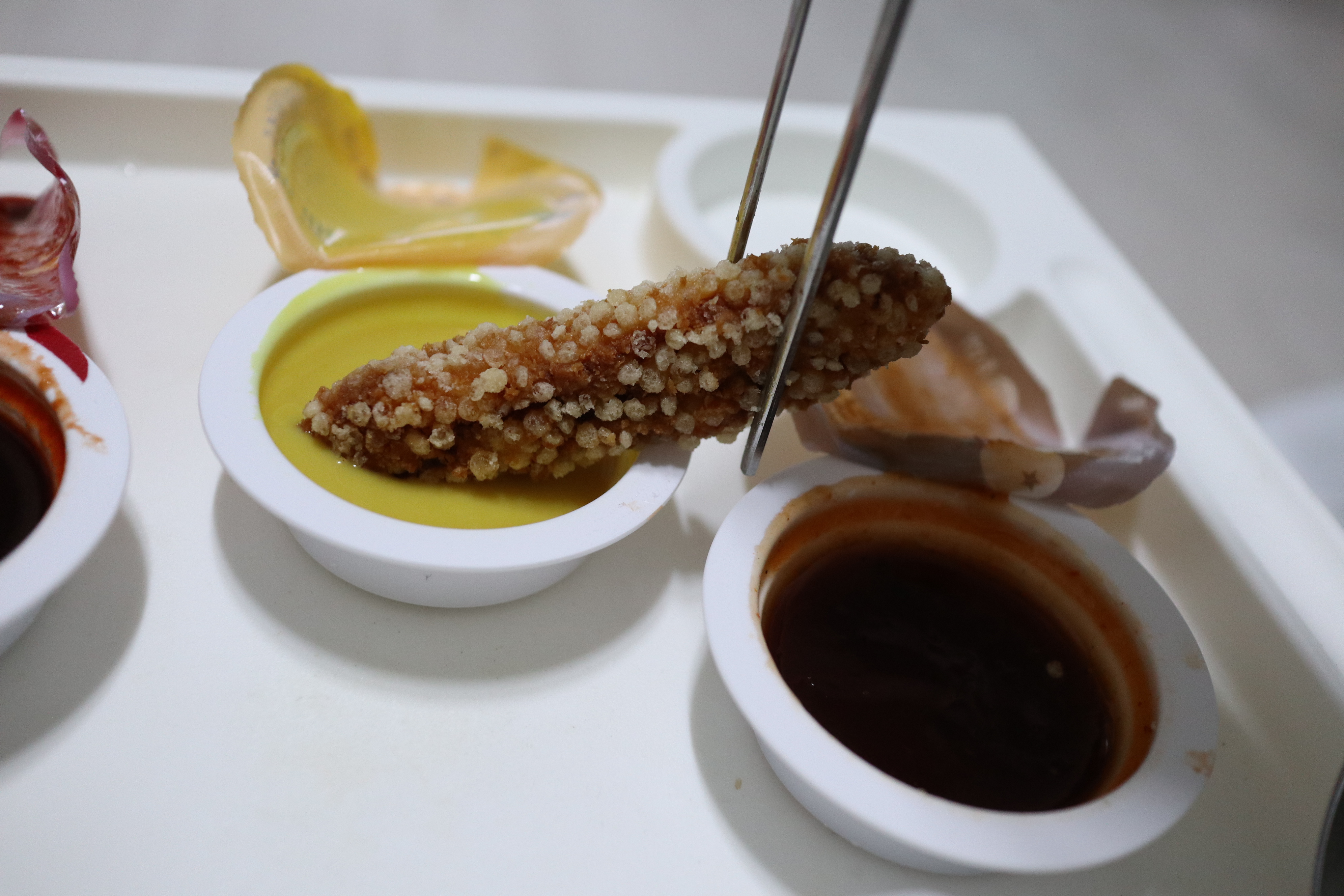 이번에는 머스터드에 찍먹~ 무난한 맛이군요.
