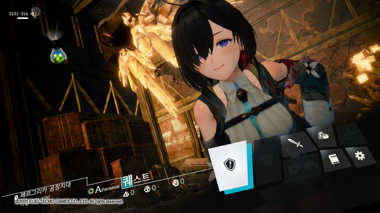 상태창을 보거나 옵션을 눌러보니 구도가 바뀌면서 메뉴가 나옵니다. 구도가 좋네요 ㅎㅎ