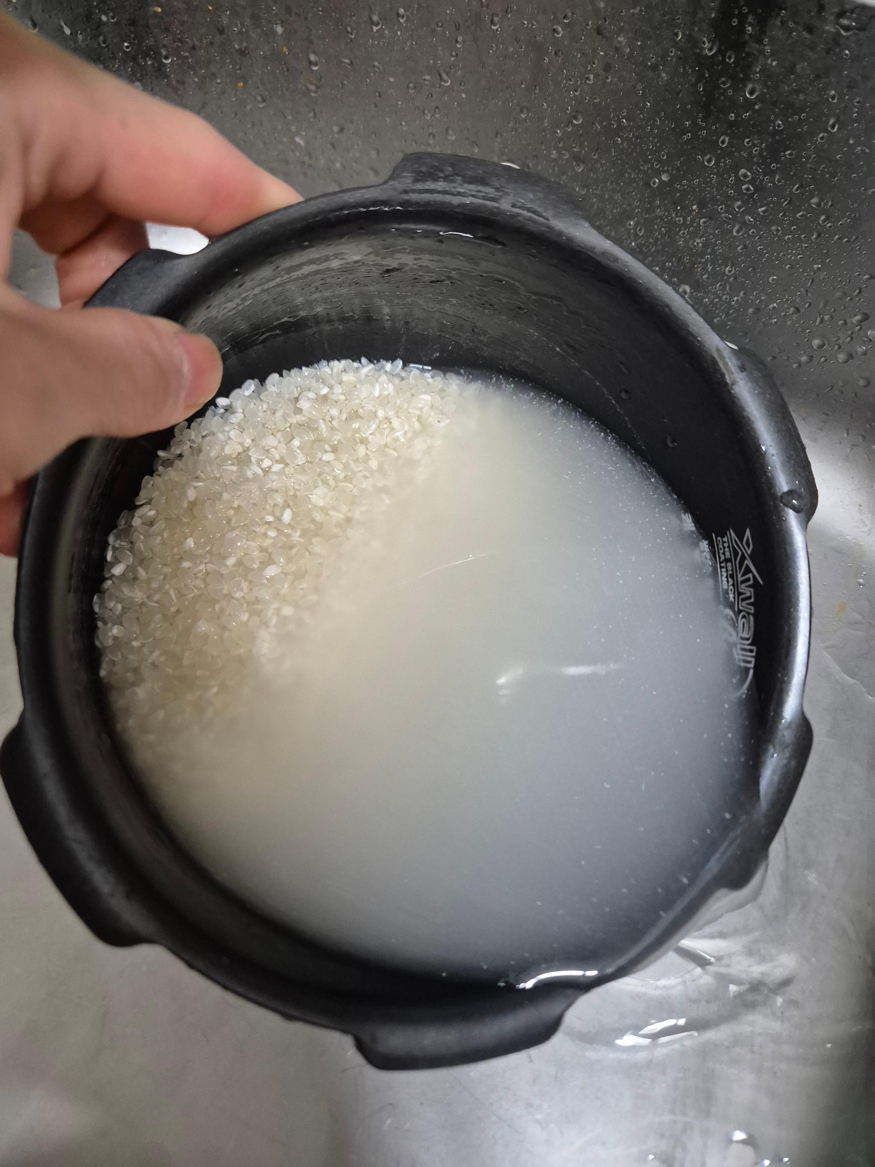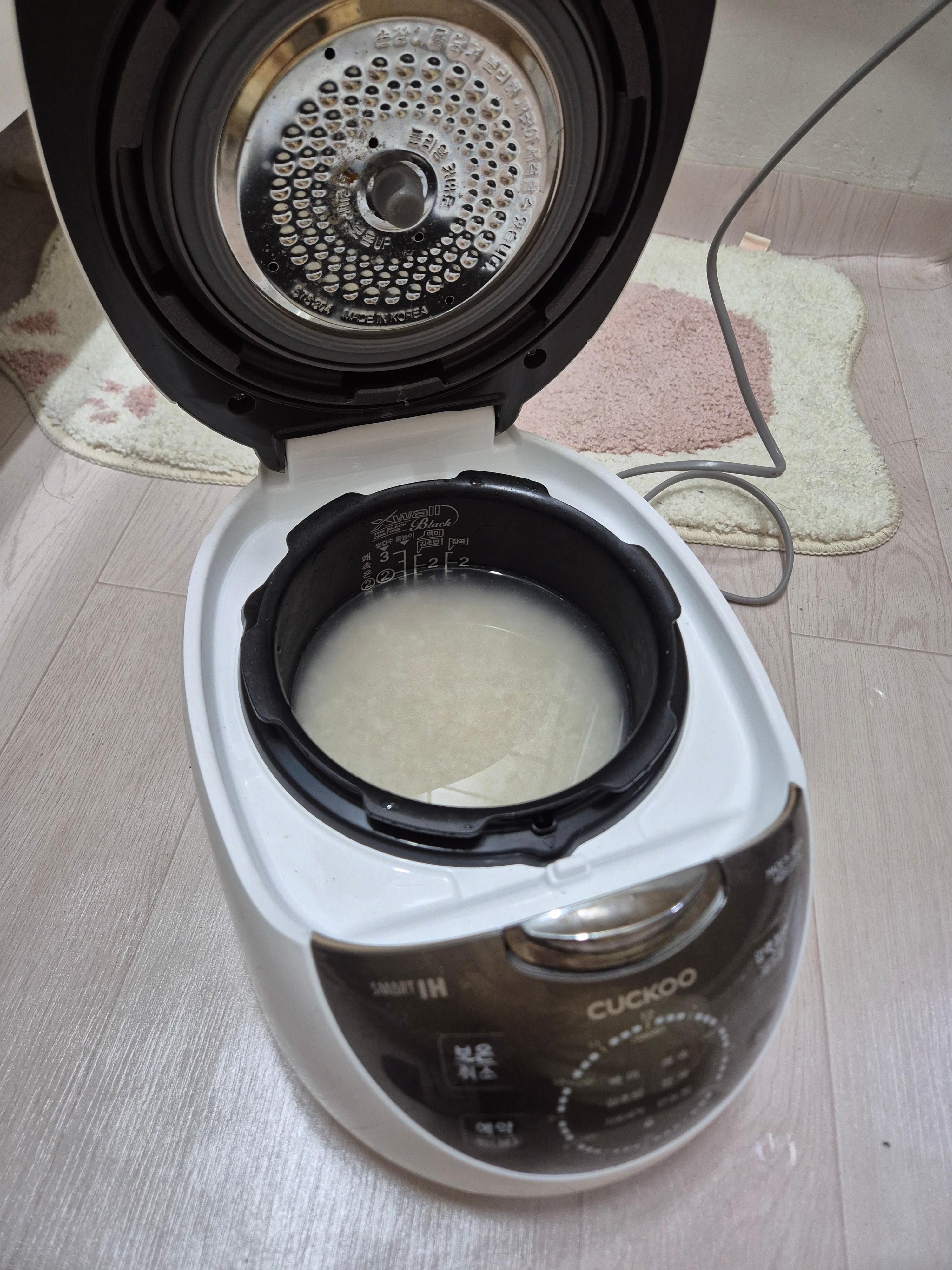 물 높이에 맞춰서 물을 잡고 밥통에 넣습니다.