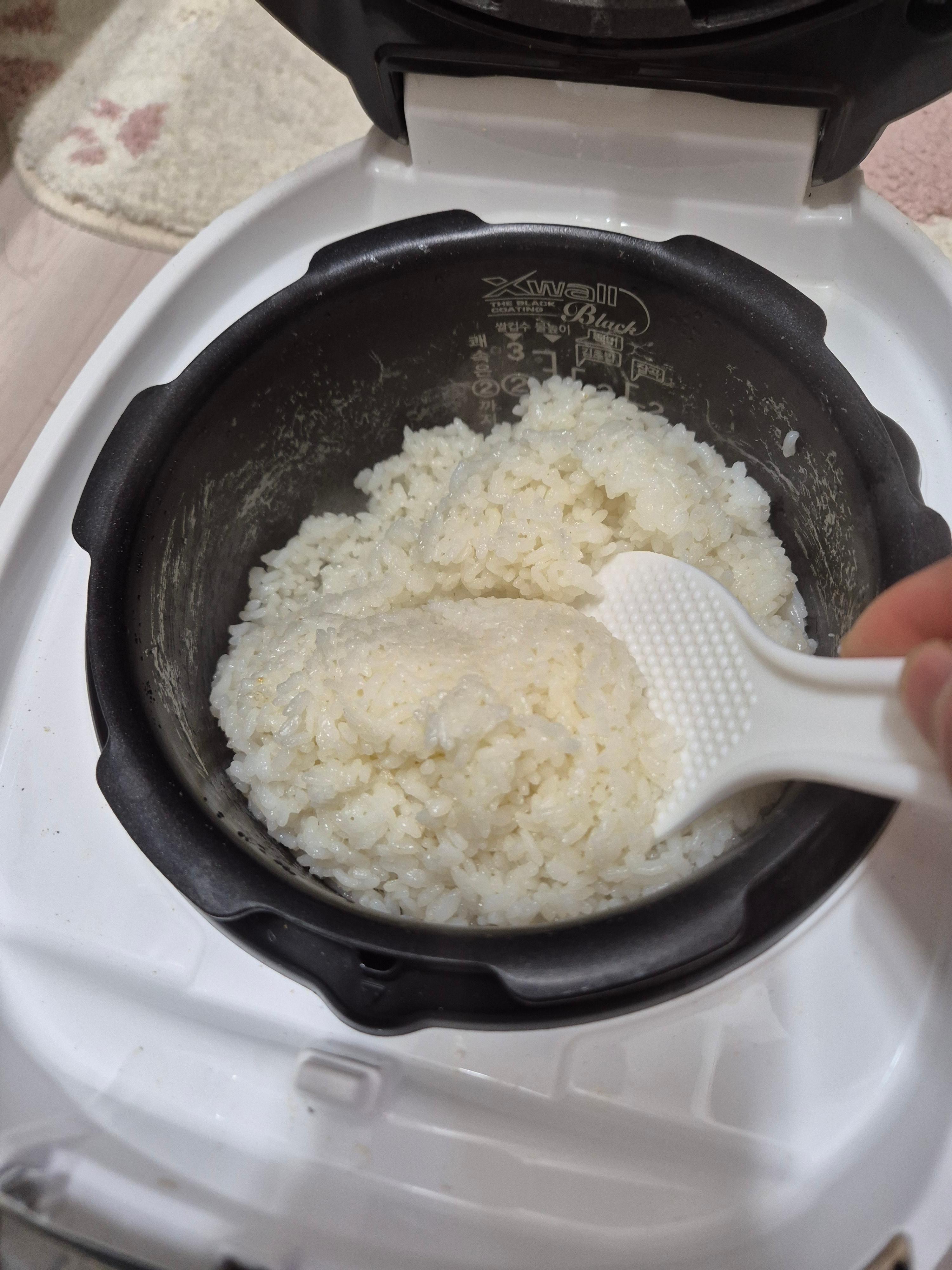 다 된 밥은 한 번 주걱으로 뒤섞어주는 것도 좋습니다.